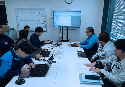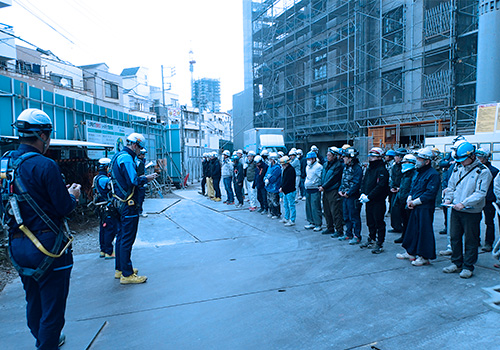毎朝8時から作業に関わる全員で朝礼を行います。その日の作業に必要な確認を行い、情報を全員で共有します。